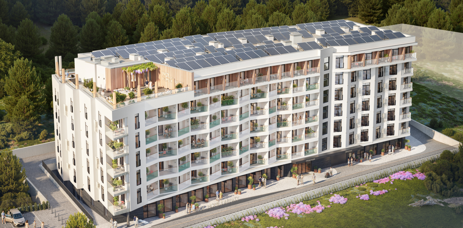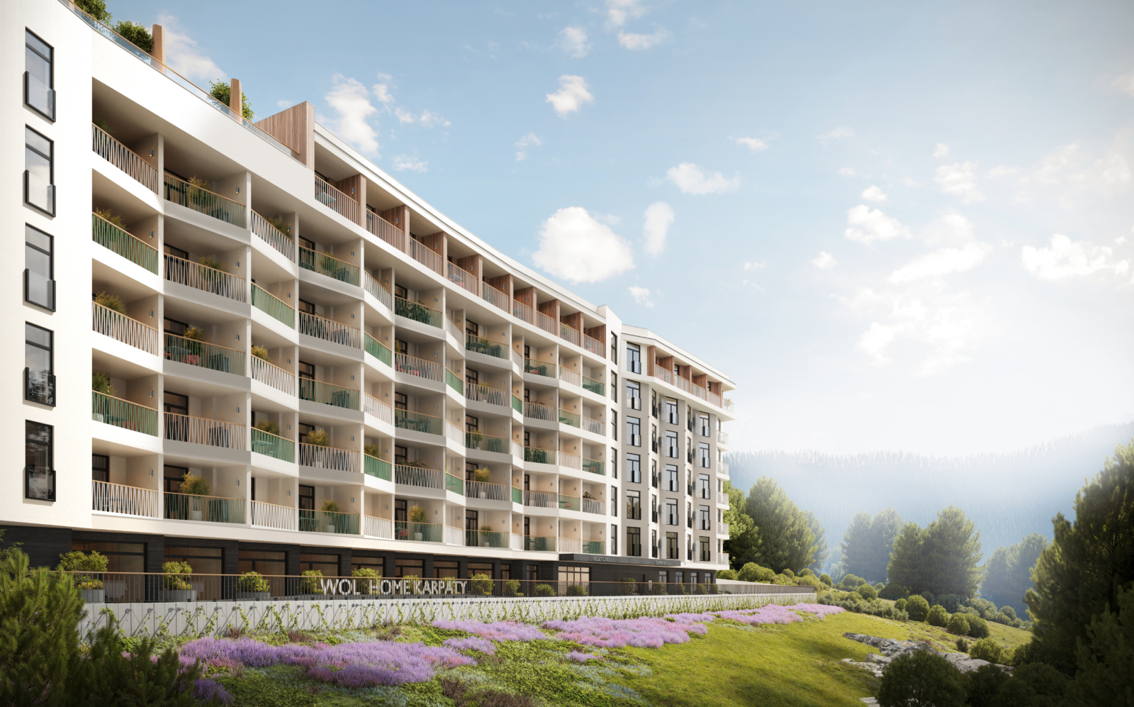 WOL. Home. Karpaty – сучасні сервісні апартаменти. Об’єкт поєднує житловий комфорт із готельним обслуговуванням. Тут гармонійно поєднуються активний відпочинок — від гірськолижних трас до літніх маршрутів — та повний релакс із панорамними краєвидами й свіжим гірським повітрям. Семиповерховий житловий комплекс на 234 апартаменти з широким вибором планувань — для комфортного проживання або вигідних інвестицій. Компактна будівля створює атмосферу приватності, а підземний і зовнішній паркінг забезпечують зручне зберігання авто. Для мешканців — елегантне лобі-бар та ексклюзивна зона відпочинку на даху з BBQ і панорамними краєвидами.