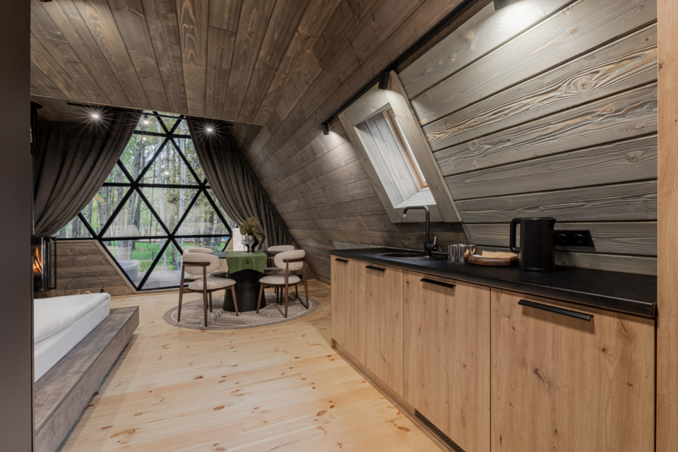 Этот запрос ежегодно растет, начиная с 2022 года. В то же время новые предложения не появлялись из-за военных рисков и экономической нестабильности. «Сейчас все популярные туристические локации требуют долгого пути, поэтому путешествие на 1–2 суток не является релевантным», — добавляет Артур Лупашко. Создание комплекса в лесной зоне в 70 км от центра Киева напрямую отвечает текущим потребностям жителей столицы и пригорода.