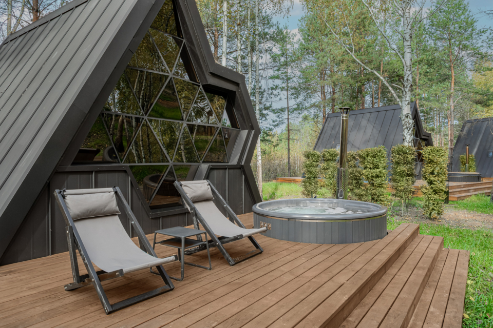Сейчас готовы к бронированию 20 домиков типа A-frame, которые обеспечивают целостное пространство для комфортного отдыха. Каждый оснащен собственной террасой с чаном и барбекю для приготовления авторских блюд. Здесь есть обогреватель, кондиционер и теплый пол в ванной комнате.